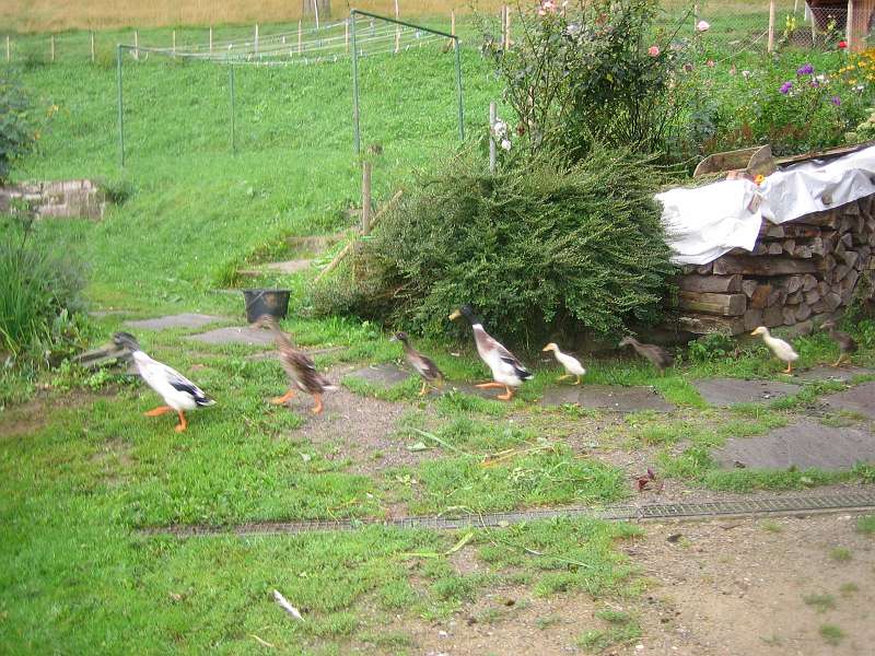 morgens müssen die indischen Laufenten ganz schnell zum See